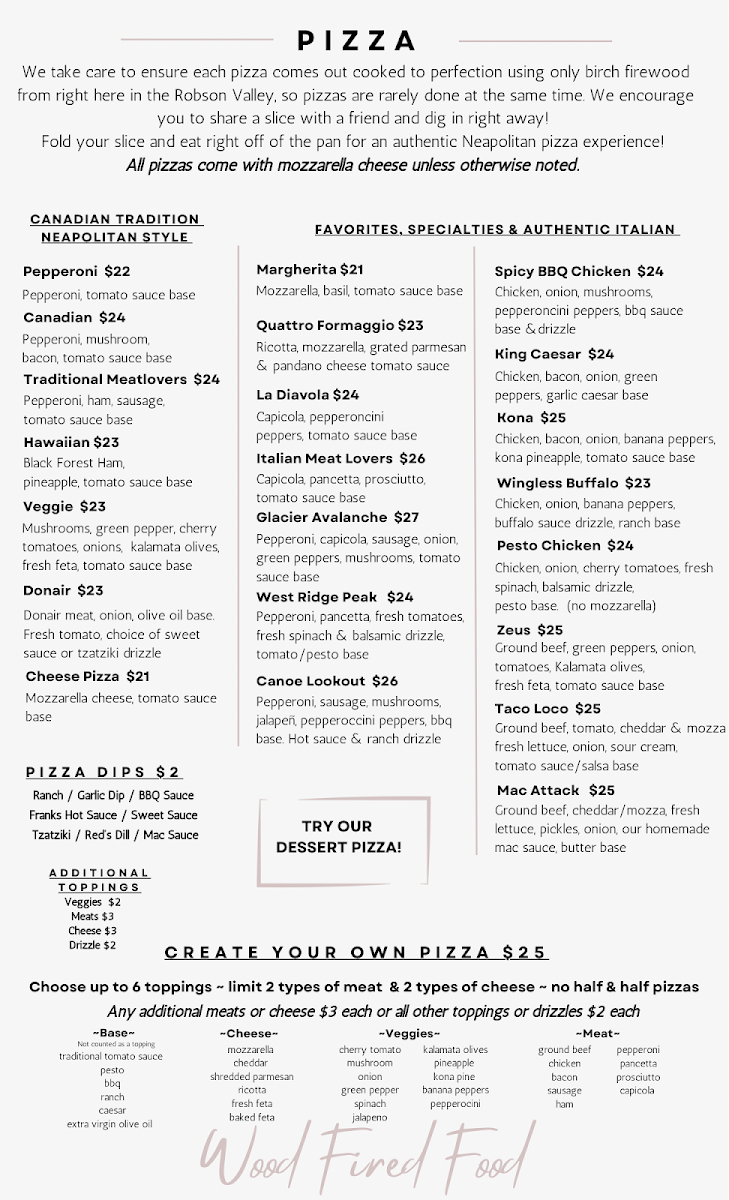Introducing Glacier Fire Pizzeria, a gem nestled in Valemount, BC, where wood-fired pizzas take center stage. This quaint eatery captivates not just with its menu but also with exceptional service, as noted by enthusiastic patrons. The highlight is the diverse selection of pizzas, from the indulgent Mac Pizza—a crowd favorite—to the vibrant vegetarian option, ensuring there’s something for everyone.